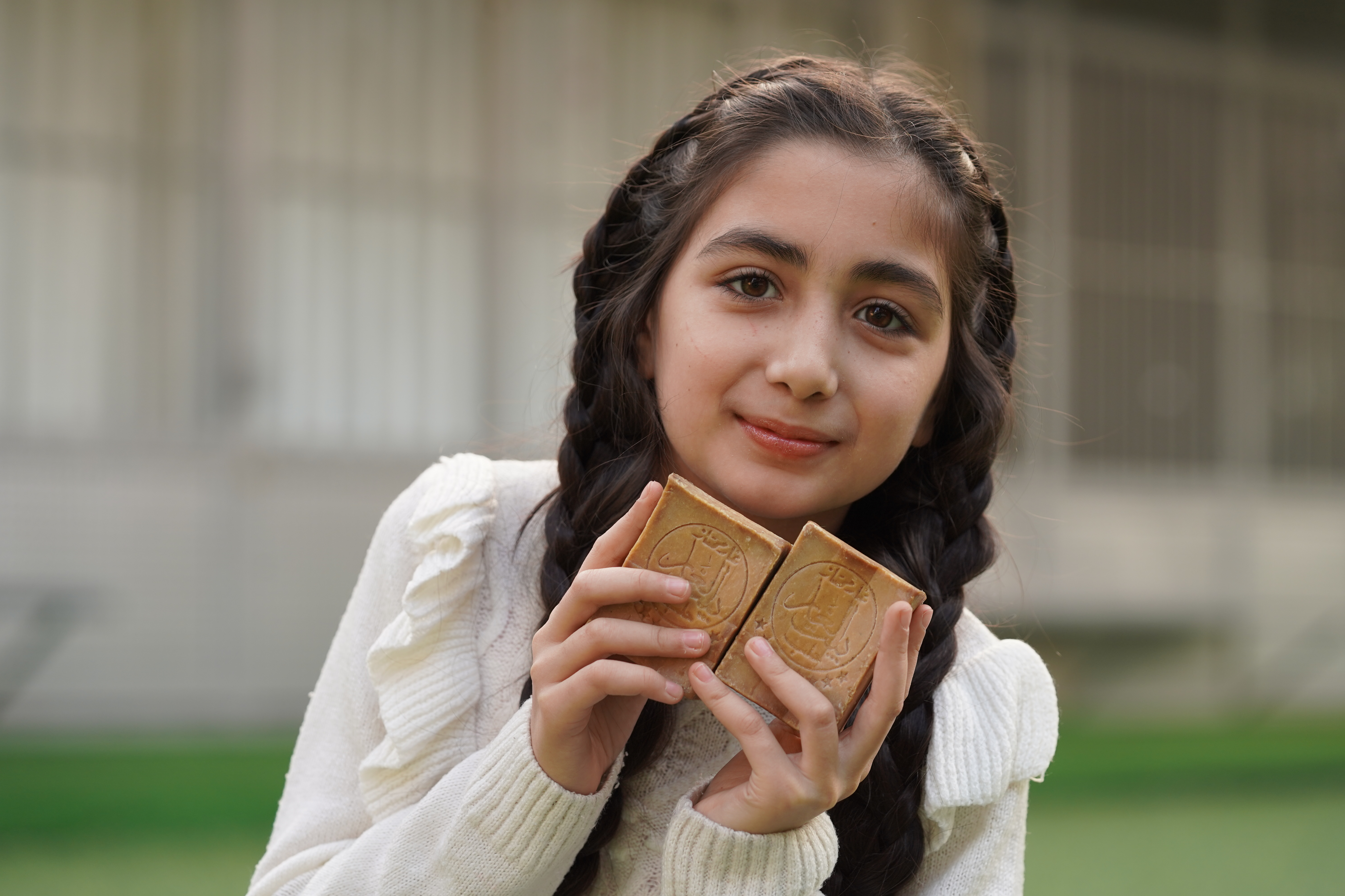 這個禮盒是台灣-雷伊漢勒中心在2024年用心推出的產品,內含一個阿勒坡手工皂及一張孩童畫作。